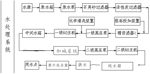 (1) 预处理(砂滤+碳滤+软化)+一级反渗透(RO)
